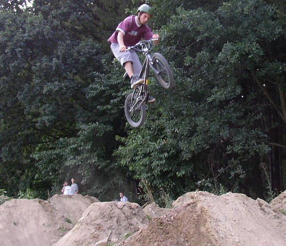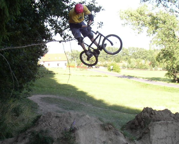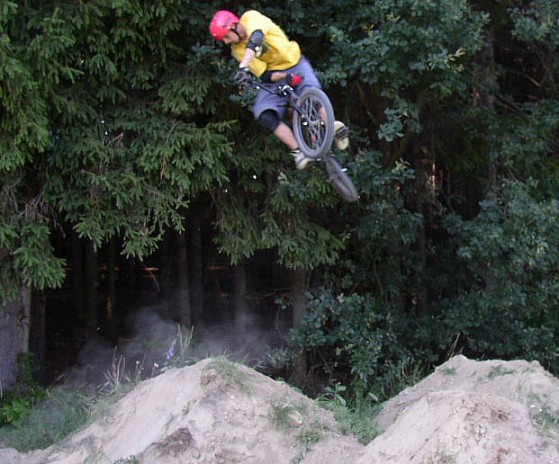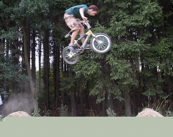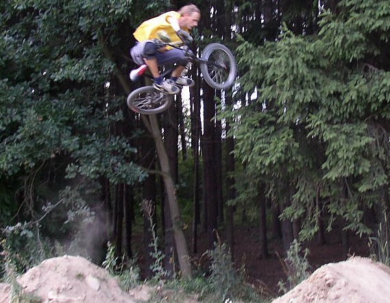Největším překvapením byl ale Vali. Ten jezdil na trailsech předtím párkrát v životě, přesto hned napoprvý lítnul transfer z pravý sekce na prostředek a tam si dal následující trails a na podruhý je naskákal oba!!! Na patnáctiletýho typa, kterej jezdí vod jara, nátěr jak hovado, hlavně Mošnič z toho naprosto nechápal. Potom ho Hout vyhecoval do levý sekce, do který se Valimu moc nechtělo, přesto si to po několika pokusech nalítal taky, z čehož sme nechápali všichni. Na čtvrtým na levý si pak dal x-up, nofoot a zkoušel nofoot can-can, kterej mu zatím ještě moc nejde. Celkově ale diktát největší a jestli se nezabije (jezdí bez chráničů), tak vo něm asi ještě hodně uslyšíte. Hout si dal taky ňáký triky (jelikož je Brokenbone rider, vyžadujou se po něm ňáký výsledky, takže se musí snažit ;-)), padaly nofoot cancany, na prostřední sekci zkoušel ňáký sérky, nejvíc se povedla x-up na prvním, onehanded x-up na druhým a suicide na čtvrtým. Padnul taky barspin a 360. Nakonec se pokusil vo 360 x-up a dal si to hned napoprvý!!!, radost velká. To nejvíc nakoplo Rošliho, kterej začal zkoušet 360 na třetím na prostřední, končilo to většinou záhozama, ale Rošli se nevzdává a jednou si ji tam prej dá, což by byl na tom skoku nářez hroznej. Bydža si pak nalítal levou sekci, Rošli s Houtem si semtam polítli transfer z levý na poslední jump na prostřední, docela příjemnej polet. A to bylo asi z ježdění všechno, trailsy dostaly za víkend pěkně napít, takže nás čekaj opět opravy, další poježdění v nedohlednu. Tento článek byl zobrazen již x |