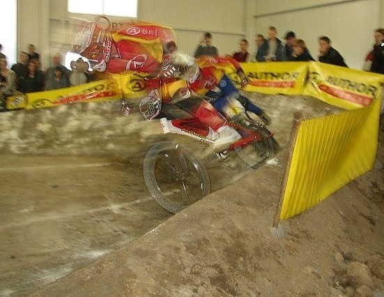 Závody byly pořádány jako jedna z atrakcí již zmiňovaného veletrhu. Hlavním organizátorem byl Renda Živný alias Žito, populární bikrosový aktivista, který navrhnul a postavil v hale o rozměrech 30 x 33 metrů výtvor, který by se s určitou nadsázkou a jistou dávkou fantazie dal nazvat bikrosovou dráhou. Pro představu bych si dovolil malý popis: šířka zhruba 2,5 metrů,omega constellation replica watches délka něco kolem 120, povrch asfalt umazaný od hlíny. Start byl klasický bikrosový se startovní mříží a semaforem uzpůsobený stejně jako dráha pro dva jezdce. Po startu rovinka obsahující mini bouli, následovalo něco jako mini lavice a po ní hned ostrá klopenka č.1, další rovinka s asi dvoumetrovým dvojskokem, který se dal skákat i projíždět, pak klopenka č.2, dále následovala další rovinka, která se křížila s tou startovní s níž měla společnou i překážku tedy opět něco jako lavici, jenomže z boku, následovala klopenka č.3 a pak hned cíl. Jak vtipně a prostě na tak malém prostoru vyřešeno, že?