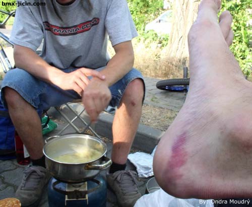 Tak takhle vypadaly hlavní disciplíny, který jsem sledoval. Kromě toho samozřejmě proběhl flat a vert. Ve flatu se dle Hasákových slov sešla velmi slušná konkurence, většina světových pro riderů byla přítomna. Víc toho ale asi nepovím. Hasák jel mástry a skončil snad na slušným 5. místě, údajně ale nebyl úplně spokojenej a mohl být i výš. Vert byl v Kolíně určitě nejslabší disciplínou. Nastoupilo do něj minimálně lidí, v profíkách snad jenom 5 nebo 6, mezi nimi i Ryan Nyquist, kterej i ve vertu slušně zadiktoval. Víc toho ale opět nevím, v podstatě jsem to nesledoval. Tradičně velký jsou v Kolíně večerní kalby. Nejinak tomu bylo i tentokrát. Opět se objevila bandička Švédů a taky potom Němci (loni jsme je rovněž pokládali za Švédy), kteří jako vždy pálili obrovský ohně, ve kterých mizelo kde co. Letos však nezůstalo pouze u nákupního vozíku, ten se stal už běžnou součástí, ale přidali k tomu v sobotu večer i horský kolo (to by jeden nevěřil, jak hezky hoří), asi třímetrovej a přes půl metru tlustej kmen od stromu a nakonec přitáhli celej strom, kterej vzali kdo ví kde a postavili ho přímo doprostřed vatry. No vypadalo to jak hořící vánoční stromeček i s dárkama (horský kolo, nákupní vozejk,...), zkrátka nádhera. Nicméně místní securiťáci proto zjevně neměli pochopení, najeli do kempu s celou hasičskou jednotkou a po velkých dohadách s šéfkou ohně (ano šéfkou, hlavní postavou a iniciátorem okolo vatry byla holka), která je slušným způsobem fuckovala, naběhli hasiči a oheň uhasili. Prostě velmi zajímavá podívaná. Celkově Bmxmasters 2005 vynikající akce, kterou určitě stálo zato navštívit. Srovnám-li s pražským mistrovství světa, vítězí asi Kolín, sice tady nebyla ani polovina jezdců co v Praze, ale přece jen ten dirt, minirampa, kemp a kalby... Výbornou záležitostí byl taky takzvaný „Riders lounge“, kam měli přístup jenom jezdci a na kartu, kterou člověk dostal při registraci, se tu fasovali nealko drinky a nějaký ovoce. Bez týhle vychytávky bysme všichni měli podstatně těžší život, studená kolča ve vedru jak svině zatraceně bodla. V Kolíně se pořádají velký mezinárodní contesty každoročně, všem doporučuju se na tuhle akci vypravit. Tento článek byl zobrazen již x |
