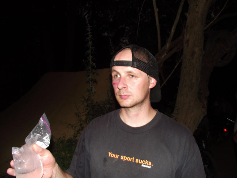 Předešlý den v Catty Woods nás všichni informovali o dnešní session na Posh Trails – další proslulé místo s nejlepšími trailsy na světě a dokonce delší historií působnosti než Catty Woods. K tomu všemu jsou tyto spoty od sebe vzdáleny asi 7mil a na oba to máme stejně daleko. Logicky jsme se nemohli dočkat, ale přes den probíhalo nějaké to pobíhání po úřadech a nemilé zjišťování skutečností spojené s koupí naší káry. Pozdnější oběd a rychle do bike shopu získat directions na Posh. Záchytné body máme a bez větších problémů se tam dostáváme, vytahujem kola z auta a do hajzlu, Hout má prázdný přední kolo, takže lepí a já si zatím dávám obvazy na kotníky. Tohle, tamto a už je zas půl šestý. Konečně jsme tam, čelisti znovu padají, session už v plnym proudu, lajn hrozně moc, skoků hrozně moc, potenciální zábavy hrozně moc, vypadá to nejvíc! Kape mi slina, nevím co dřív. Jestli procházet skoky ( projít všechno je tak na hodinu a stejně se ty lajny nedají zapamatovat), nebo brát kolo, nebo čumět jak to všichni lítaj a jezděj vlaky. Hout si prohlídne sotva pár skoků, co kam vede nemá tušení a už tlačí kolo na rozjezdový pahorek. Ten rozjezd tady je naprosto úžasnej, jen se spustit pár klopenkama, naskakovákama a odsud to vede na úplně všechny lajny a že těch možností kudy se spustit je asi tak deset! Hout sází na taktiku, že když pojede za někým, nemusí si skoky procházet, docela mu to vychází a za chvíli má nalítaný dvě lajny a celej svítí. Já jdu lajnu po lajně, projdu si jí a pak jedu.( Na rozjezdu stejně rozpačitě přemýšlím, jestli ten záludnej transfer je osmej, nebo devátej skok lajny, heheh.) Každou lajnu si jezdím 7x-10x a pak teprv jdu na další, baví to strašně! Hout se zasekává na těžší lajně, kde je potřeba asi na dvou místech lehce přibrzdit, nemůže to vychytat, dává pár záseků a začíná lehce nadávat, že je dneska špatnej a že na dokonalejch trailsech by se nemělo brzdit, no však ho znáte. Do toho se Brian Foster, který si svačí všechny lajny a točí pár třišedin s prstem v nose, baví na rozjezdu s lokály o letech okolo roku 2003 a konci jeho bikrosové kariéry. Toho se samozřejmě chytne Hout a vzniká v vtipná konverzace, která pobaví všechny na rozjezdu. Mimochodem i přes tak malou vzdálenost Catty a Posh jsou na obou spotech odlišní lokálové a jezdí a digguje jich tu spoustu, je to tady prostě trailsová mekka. Ale zpátky k session. Clint Reynolds a nám doposud pouze odněkud povědomý James Nutter se prohánějí ve vlacích, oba v nehoráznym stylu. BF je kapitola sama pro sebe, byste museli vidět. A spoustu lokálů lítá a lítá a my s nimi. Pak zas chvíli procházím lajny a vybral jsem si jednu hodně zajímavou. Klopky a step down na začátek, jeden rovnej, kterej se trochu přelítává, klopka, několik transferů za sebou postupně se zvětšujících, nízký naskakovák na rychlost a na konec tři rovný skoky větších rozměrů, kde se lítá úžasně vysoko. Projedu to napodruhý do konce a vybízim Houta, že super lajna, dělěj pojď voe hned. Nic si samozřejmě neprohlídnul, říkám mu bacha na první, přelítává se. Jede za mnou aby viděl co a jak a na poprvé za mnou dojíždí do konce. Super nejvíc, rychle znova, tryskomyši. Opět za sebou, Hout už to projel, na žádny záludnosti už ho neupozorňuju. Jedu si, Hout za mnou a na prvním za sebou slyším nějakej šramot. Dojedu do konce, Hout nikde, rychle k prvnímu zjistit co se děje. Hout se drží za obličej, Clint vyzpovídává Houta jestli je ok. Ten první skok samozřejmě přetáhnul hodně a dal si řidítkem pod oko. Panika, že to má roztrhlý a že nemocnice žádná, že se to musí zašít tady. Nakonec to na šití naštěstí není, ale monokl znatelnej hned. Lokálové ho nejvíc ochotně hned odvezli pro led a ledovat a ledovat ať nám nenateče půlka Houta. Bohužel tato újma nebyla všechno. Daleko větší újmu utrpěl devět let starý S&M Race Frame. Rána na dopadu to byla taková, že to nedala spodní ani horní rámová trubka, deformace znatelná a úhel hlavovky poupraven na nosemanuály. Hout zamáčkl slzu a hned od ochotných lokálů dostal friendly nabídku luxusního kompletu za přátelskou cenu. Jakýho, o tom zas příště. Hout se teď bude pár dní léčit, ladit nový kolo, fotit, točit,snad to nepotrvá dlouho, léto tu taky nebude věčný a zažene nás do Texasu. Na noťasu českej čas 6:40,shit, jdem spát.