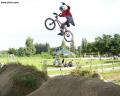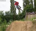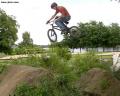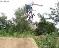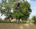 Hodili jsme s ním lehkej pokec a dozvěděli se nějaký zajímavý informace. Tak například horský kola mají vstup na trailsy zakázaný (do parku tohle neplatí), protože mívají moc hrubej vzorek na plášti a nedělá to nájezdům dobře, potom taky brzděj v nájezdech (díky oběma brzdám), nejraději to tam posaděj do dizasteru a celkově prej horský kolo je přece na downhilly a podobný věci, tak co by mělo dělat na trailsech. Je to tak. Pak jsem se vyptával na skoky. Tak ty tu stojí od 1999. Dělali a dělají se komplet ručně, akorát při největších přestavbách, jako třeba když se stavěla největší sekce, tak přijelo UNCčko. Trailsy se přestavují v podstatě pořád, tím bylo ale myšleno spíše nový nájezdy, nový dopady a podobně. Rozsáhlejší přestavby nejsou příliš častý, údajně prej tak jednou za 2 roky. Poslední můj dotaz byl na Rebeljam, který se tu jel asi před měsícem. O tom jsem se moc nedozvěděl, akorát že Ryan Guettler je crazy guy a dal si na největší sekci sérku backflip, doubletailwhip, 360 tailwhip to x-up a frontflip. No, co dodat.