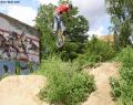 Pršet přestalo někdy v noci ze středy na čtvrtek. Ráno na nás čekalo trochu chladný a větrný počasí, ale konečně aspoň nepršelo. Trailsy pobraly nápor vody nečekaně dobře. Betonový nájezdy se v podstatě ani nehnuly, stačilo jenom vymést kaluže, provést drobný opravy dopadů a už v poledne jsme lítali. Čtvrtek se víceméně projezdil celej, po středeční blamáži byla patřičná nadrženost, lítali jsme snad 6 hodin v kuse. Přišli i nějaký lehčí trýčky a sérky. Hout dával třeba opposite table, onehanded table, x-up, turndown a barspin na závěr, nebo to samý zakončený 360 tabletop. Kudr dával na posledním nothing, nějaký nofooty, lehkej suicide či table. Svíce nejvíc ladil styl, snažil se překonat svůj bikrosovej původ a lítat trochu výš, což se mu dařilo se střídavým úspěchem. Překvapil Mošnik, kterej si dával nejvíc s přehledem a docela vysoko i ve stylu levou lajnu. Škoda jen, že se neodvážil na pravou.