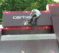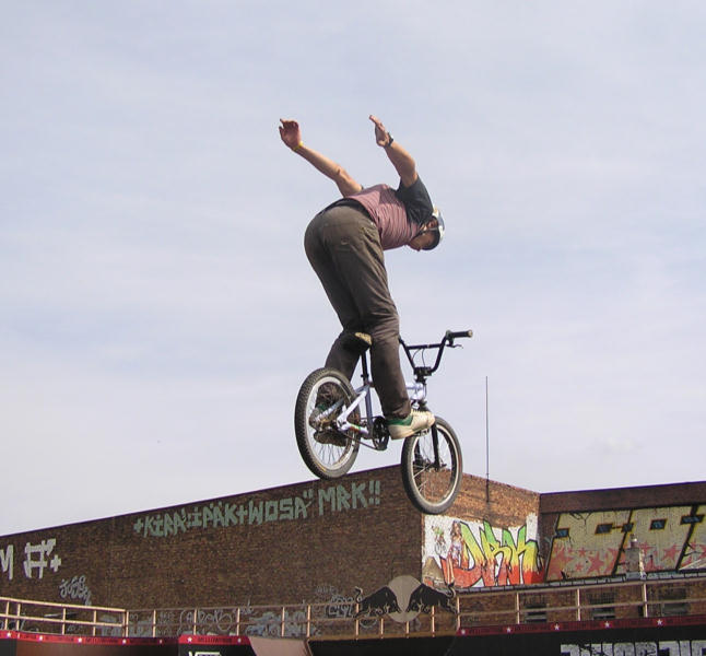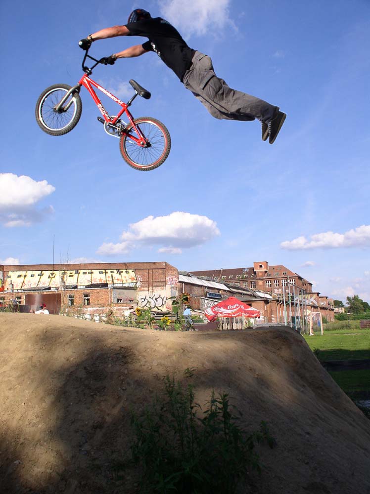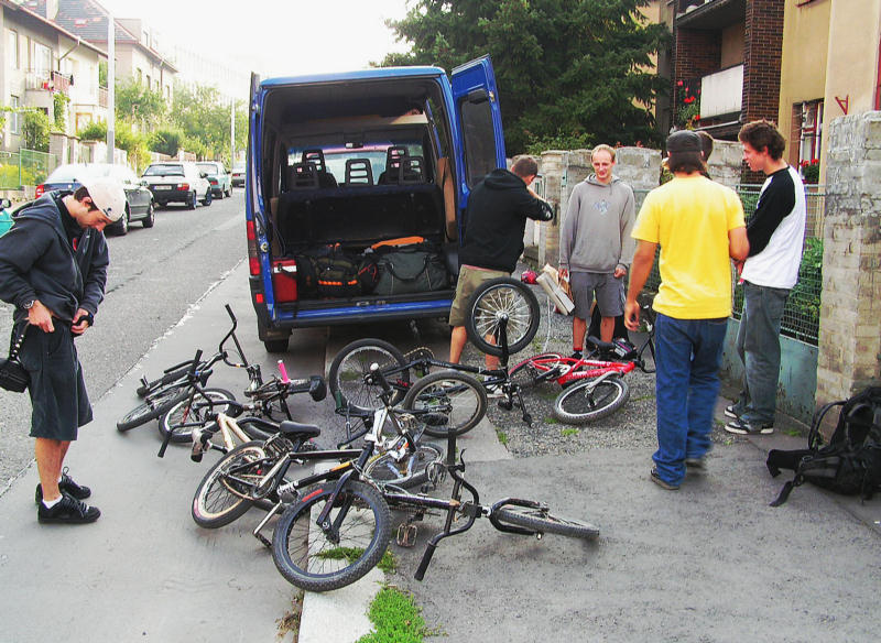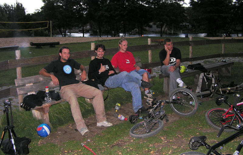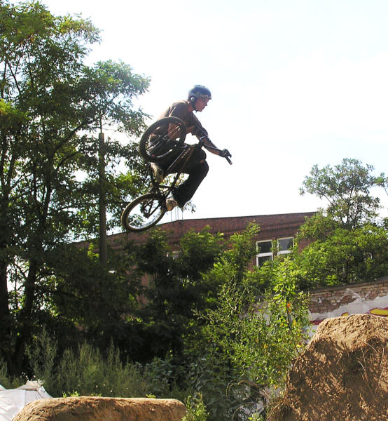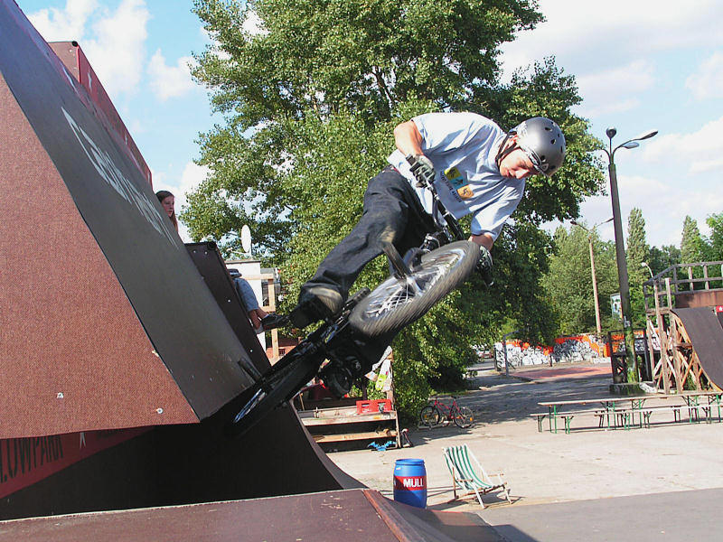 Second Sommer trip 2005 - Berlin, Mellowpark Text: "mailto:hout@bmx-jicin.com" Fotos: "mailto:j.karlik@quick.cz", "mailto:hout@bmx-jicin.com", Pavel Caha, "mailto:ondrej.moudry@post.cz" Nápad podniknout co nejdříve další výlet do Berlína utkvěl v hlavě Houtovi a Svícemu v podstatě bezprostředně po návratu do Čech z tripu předchozího. A tak slovo dalo slovo, dohodnul se termín a hurá pojede se. Z jičínský party však tentokrát nikdo další z různých důvodů nemohl jet, a tak se obvolalo pár kámošů a nakonec z toho vykrystalizovala velice zajímavá sestava v podobě Hout, Svíce, Ondra Moudrý, Davlos, Ondra Mladý, Pavel Caha, David Pánka a Jirka Karlík. Cokoliv dodávat netřeba, řekl bych. Replica Handbags Z Prahy jsme vyrazili ve čtvrtek 25.8. v dopoledních hodinách a okolo třetí odpoledne jsme se ocitli před Mellowparkem. A přesně v tu chvíli začalo pršet a nepřestalo snad až do půlnoci. Stihli jsme akorát obhlídnout trailsy, který byly tentokrát po předchozích mailech všechny vzorně připravený a přikrytý plachtami před deštěm. Ubytovali jsme se a asi ještě hodinu čekali a doufali, že třeba přestane pršet. Déšť ale spíše ještě nabíral na síle, takže jsme čtvrteční ježdění definitivně odpískali a rozjeli docela slušnej mejdan... V pátek ráno už to vypadalo s počasím o poznání líp. Nejvíc natěšenej Jiří Karlík vyhlásil po kalbě budíček už v 8 ráno a že se jde jezdit. No ne všichni jsme s tím souhlasili, to je jasný. Přesto už před polednem běhali Hout s Cahinem a Svícařem s lopatou v ruce po trailsech, zbytek party lítal v parku. Trailsy, jak jsme věděli od minule, snášej vodu velmi dobře, takže stačilo trochu poházet a nejmenší levá sekce se dala v pohodě jezdit. K odpoledni se zprovoznila i oblíbená pravá lajna. To přitáhlo na hlínu i Jiřího s Mlaďákem, kteří se společně s Cahinem postupně prokousali všemi skoky. Jiří začal záhy roztáčet svoje barspiny a na posledním jumpu točil 360 či 360 x-up. Cahin se zatím jen tak rozjížděl, přeci jen neseděl na kole kvůli operaci zápěstí přes dva měsíce. Hout občas někde protáhnul oblíbenej turndown, semtam si společně se Svícařem polítnul transfer doleva z posledního jumpu. Objevil se taky stavitel trailsů Hans, kterej od naší minulý návštěvy nejezdil, když se smotal při tailwhipu a narazil si rameno. Zjevně mu ale přestávka nijak nevadila a okamžitě začal motat svoje nejvíc stylový 360, vyšla i 360 lookback. V pátek se jezdilo až do večera a po náročným dni následovala opět kalba. Velkou party pořádali přímo v Mellowparku místní lokálové, jednalo se o birthday party asi tří lidí, jeden z nich byl i z minulýho tripu nám známý „Medvěd“. Příjemně nakalení jsme se na tuto party vydali a nenechali jsme se dvakrát pobízet od správce parku Maxe, ať si když tak něco vezmem ve stanu plnýho žrádla a pití... Ukázali jsme jako správní Češi a myslím, že ve stanu jim toho z obložených mís moc nezbylo. Mimochodem mě zaujalo, že tam měli hromadu jídla a nealko drinků, ale chyběl sud piva a alkáče obecně málo, což by se u nás na takovýhle party jistě nikdy nemohlo stát. V sobotu jsme byly z předchozí party značně vyndaný a neschopný. Jedinej, kdo měl sílu jezdit, byl Jiří Karlík, kterej to minulou noc zatáhl a šel asi v 11 spát. Největší šrámy si z kalby lízal asi Hout, kterej si v noci ve vedlejším squatu zdatně narazil nárt a ze sobotního ježdění nic nebylo. Na hlíně se přes den moc nejezdilo, spíše se jen zevlilo, nebo jezdilo v parku. Slušnej jamík zato proběhl večer. Nejdřív jsme nechápali z místního typa jménem Bommel, kterej neskutečně nakládal v parku a potom ukázal, že i na trailsech zatraceně umí. Jeho sérky plný tailwhipů, 360ek, condorů, nofoot cancanů na obě strany a dalších věcí nikoho nenechali v klidu. Potom se hecoval David Pánka s Jiřím, kdo dá barspin na každým skoku. Nakonec se to podle očekávání povedlo Jiřímu, hodně slušná práce. Pánčus jinak dával pro něj typický sérky plný barspinů, suicidů, nofootcancanů a na posledním skoku točil donekonečna 360 odjetou na jednu nohu, za což (za tu nohu na zemi) se na něj Jiří velice rozčiloval, jakože proč ji tam dává. Dave to však nakonec zabil čistým truckdriverem, což ocenili všichni přítomní. Jiří zkoušel 360 na čtvrtým jumpu, ale nedokázal ji dát tak čistě, aby jel na další skoky, občas na posledním padnul i tailwhip. Proběhnul taky závod na čas o nejrychlejší a nejpomalejší jízdu. Nejrychlejší byl podle očekávání Svíce. Bez nejezdivšího Houta mu sekundoval jenom David Pánka. O nejpomalejší jízdu Pánčus vyhrál a nutno uznat, že jeho vysoký pomalý polety byly parádní. Na hlíně se objevil i Ondřej Moudrý a po několika pokusech si ji v klidu nalítal. Triky ale nijak moc nehrotil, vybavuje se mi snad jen turndown. Pavel Cáha předvedl svůj pověstnej cancan a došlo taky na supermana. Špatně v žádným případě nejezdil Mlaďák, kterej protahoval cancany, suicidy, semtam barspin, superman či 360 na posledním jumpu, dobrá práce. Z parku se mi teď ještě vybavuje downside tailwhip a wallride to barspin v podání Jiřího. Sobotní večer byl o poznání klidnější než předchozí, grilovačka, vtípky, pohoda. Až pak Davlos nebo kdo přinesl Ondřejův sprej zvanej Diplomat, kterej jsme však už dříve přejmenovali na „Zbraň“ pro jeho opravdu zajímavou vůni, kterou Ondřej taky rád jako zbraň proti všem používal. Diplomat se osvědčil po všech stránkách, jeho hořlavost byla překvapující a nakonec posloužil i jako menší granát... Naštěstí se nikomu nic nestalo, Davidův gril to docela rozchodil a barák kupodivu nechytnul. Vskutku kupodivu. V 