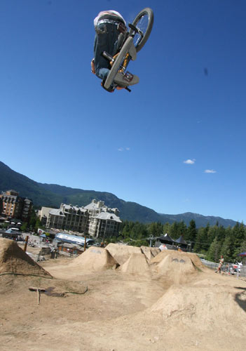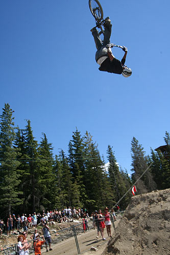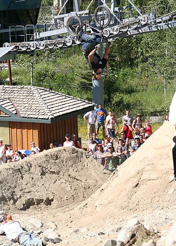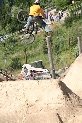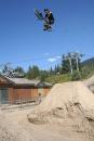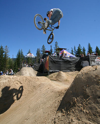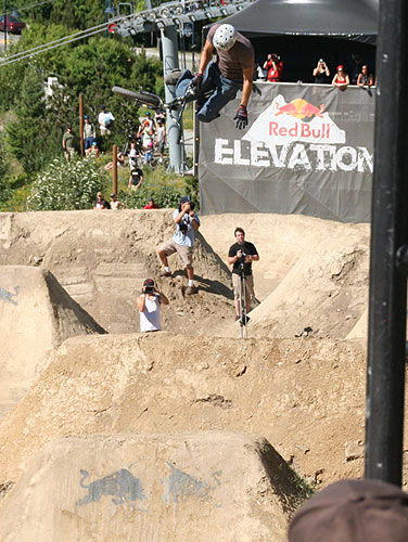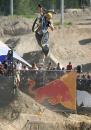 Redbull Elevation 2006 Translated and edited by: "mailto:hout@bmx-jicin.com" Jak už jsme uvedli, ve dnech 29.6. - 1.7. proběhnul v kanadském Whistleru nejprestižnější dirtový contest současnosti, Redbull Elevation. U zrodu této jedinečný akce stojí samotý Jay Miron, BMX legenda, jistě není třeba nikomu tohohle typa představovat. Jay Miron je pořadatelem dnes již kultovního Metro jamu, jednoho z největších streetových contestů,www.uhublotsale.me a někdy v roce 2004 přišel s myšlenkou adekvátní dirtový akce. Jayova vize byla taková, udělat naprosto unikátní dirtový contest, který by reprezentoval spíše trailsový styl ježdění. A tomu by samozřejmě odpovídaly především skoky. Rok se vše připravovalo a v roce 2005 proběhnul ve Whistleru první ročník Redbull Elevationu. Ať už se původní vize zdařila naplnit či ne, první Elevation sklidil velký úspěch a Jay Miron okamžitě začal s přípravami dalšího ročníku, který měl být dle jeho slov ještě daleko vychytanější. Rok se s rokem sešel a dnes už můžeme s klidem říci, že Jay dodržel slovo a Redbull Elevation 2006 posunul hranice dirtového contestu zase o kousek dále. Akce se setkala s obrovským ohlasem jak ze strany veřejnosti, tak ze strany médií i samotných jezdců. Ti se vesměs vyjádřili, že touto cestou by se mohly ubírat dirtové contesty budoucnosti. V dalším textu vám přinášíme něco o průběhu toho nejpodstatnějšího, tedy finále, respektive 20 nejlepších. 20. místo bral Adam Baker. Tenhle vynikající dirtař vsadil vše na jednu kartu. Buď to totálně zabije a může pomýšlet na nejvyšší mety, nebo to nevyjde a není co řešit. Adam pokoušel hned na prvním skoku 360 tailwhip, avšak nikdy ho nedal dostatečně čistě a v následující 180ti stupňový zatáčce ztratil rychlost na další skoky. Adam Baker zkrátka neměl nejlepší den. Nejlepší den neměl ani Gary Young. Ten se ovšem poslední dobou přeci jen zaměřuje spíše na street a už samotná účast ve finále je pro něj úspěchem. Takže 19. Překvapením se stal Dane Searls. Nehorázný trailsový štýlo, obrovský supermany a na závěr double tailwhip na největším dablu, kterým si zajistil best trick award a 1000 dollaru ve svý kapse. Nebýt několika pádů, mohl Dane Searls pomýšlet rozhodně na lepší než 18. místo. O další překvapení se postaral TJ Ellis na 17. místě. I jeho potkaly pády, ovšem triky jako nohanded flip, turndown flip či ne úplně čistě odjetý backflip double tailwhip rozhodně stojí za pozornost. Na 16. místě skončil můj velký oblíbenec s jedním z nejhezčích trailsových stylů vůbec a tím je Paul Kintner. Paul jako jeden z mála neměl již od začátku nejmenší problém s nalítáním jumpů a se svýma Slambarama v original šířce více než dobře reprezentoval čistě trailsovou školu. Vysoký polety, turndowny, lookbacky, inverty, onehanded motowhipy a k tomu 360 variace nenechávaly nikoho na pochybách. Naneštěstí se Paul zle rozsekal na největším skoku a nemohl pokračovat dále. Bezpochyny měl na lepší umístění. Kym Grosser společně s Alexem Dropsym byli jediní dva, kteří pokoušeli tento nehorázný spot brakeless. Zatímco Alex (vypadl v kvalifikaci) coby ortodoxní brakeless vytrval, Kym Grosser nakonec brzdu přeci jen namontoval. Tyhle trailsy přeci jen nepatřily mezi brakeless friendly. Vrcholný trik Kyma byl tailwhip to seatgrab indian air. Co dodat. 15. flek. 14. bral u nás dobře známý Kye Forte, vítěz loňského MS na Štvanici. Kye předvedl svůj typický arsenál 360 variací, nějaký flipy a whipy, avšak na vyšší příčky to v takto našláplým contestu nestačilo. O stupínek lépe skončil Brian Foster. Tento dnes už totální oldschooler a velký univerzál, který dovede zajet v podstatě na čemkoliv, se na trailsech ve Whistleru především dobře bavil. Brian jako obvykle roztáčel své typické 360 variace a pokoušel spoustu zajímavých transferů. Nakonec se pokusil o prakticky nemožný transfer, který také nedolít a skončil "stahovačkou okýnek" a mnoha kotrmelci, což však v žádým případě nemohlo ohrozit Brianovu dobrou náladu. Brian Foster rules. Na 12. místě skončil Dave Dillewaard, který má v zásobě triky jako 360 tailwhip to barspin. Tady Dave předvedl slušné jízdy se spoustou tailwhipů, 360tek ale i stylových invertů. Slušná práce. 11. flek, poslední non-price money umístění, zbyl na Jamese Fostera. Tenhle typ překvapil minulý rok 5. místem a především odjel jako první na dirtovým contestu triple tailwhip. Letos však zůstalo pouze u double tailwhipu a 11. místa. A dostáváme se k první desítce, kde si už každý přišel na nějaké ty price money. 10. místo - Romuald "Bibi" Noirot. Fenomenální Francouz dával slušný jízdy plný whipů, 360tek, 360 nohanded a různý mega rychlý až tří trikový kombinace, který porotu neméně zaujaly. Mimochodem porota fungovala ve složení Dave Osato, Ryan Jordan, Benny Korthaus, Ryan Barret a Matt Beringer. Na devítku se dostal Darren Barrecloth, velká hvězda současného mtb světa. Darren však začínal s bmx a jak vidno, na malým kole pořád ještě umí. 360, supermany, vysoký polety a styl. Dobře von. TJ Lavin se svými zkušenostmi stále ještě nepatří do starého železa. Jeho cancany, supermany a indiany vždycky stojí zato. K tomu TJ přidal pár transferů ve velkým stylu, backflip variace a 360 whipy. Celkově 8. místo. Alejandro Caro Ospina mě zaujal už minulý rok na Bmxmasters v Kolíně nad Rýnem, kde zle zabíjel. Ovšem Whistler a Elevation byl alespoň ze začátku pro tohoto Kolumbijce trochu moc. Dokonce uvažoval, jestli neměl spíše letět do Anglie na Urban Games. Nakonec se však rozskákal a ve finále předvedl například decade, flatspin 360, backflip variace