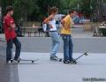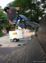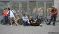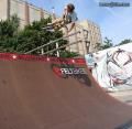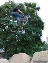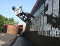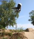 Sommer trip 2006 - Berlin, Mellowpark Written by: Mošnik Photos by: Berňák, Mates, Mošnik, Bydža & Kudr Ve dnech 15.-20.8.2006, vyrazila část jičínské crew ve složení Kudr, Bydža, Mošnik, Mates a Berňák, na dnes již tradiční trip, do berlínského Mellowparku. Jelikož nám Berňákův otec zařídil luxusní dodávku, cesta proběhla bez problémů a my dorazili, po obvyklém bloudění po berlínském předměstí na místo. Okamžitě jsme samozřejmě zamířili zkontrolovat místní trailsy, na které jsme se těšili nejvíce. Je třeba říct, že precizní práce Hanse Friedricha oproti loňsku nedoznala žádné změny, co se však změnilo, byla levá a omega seamaster 300m replica prostřední sekce. Na levé nejlehčí sekci přibyly v její zadní části, dle prvního dojmu, téměř nepřekonatelné transfery. Uprostřed díky nedávnému Rebeljamu vyrostla obrovská sekce skoků s polety, jejichž velikost si nic nezadala s vápenkou Štěpána Herinka. Park doznal také některých drobných změn a v pravém rohu vyrostla nová konstrukce tvořená bangy. Okamžitě nás popadla euforie, ani jsme se nevybalili a hned jsme začali jezdit. Začali jsme levou sekcí, jelikož všechny ostatní jumpy byly zakryty plachtou, díky nedávným dešťům, a nám nebylo dovoleno tyto plachty sundat. Ani jsme si nestihli všimnout, jak se rychle stmívá a že je čas pořešit ubytování. K našemu nemilému překvapení jsme zjistili, že nám náš předem objednaný pokoj vyfouklo několik italských riderů. Nezbylo nám nic jiného než vzít za vděk stany, které jsou připraveny a užívány pro BMX Summer Camp. Po první prohlídce našeho nového útočiště jsme z hrůzou zjistili, že naše první noc nebude žádný med. Stany totiž, a to včetně lehátek, nebyly nepodobné polnímu lazaretu druhé světové války ;o). Jelikož byla docela zima a my jsme nebyli vybaveni na nocování v takových podmínkách, nezbylo nám než v nedalekém Kauflandu nakoupit nezbytnou dávku tradičního Merlota a pořádně se jím zahřát. Druhý den jsme se již mohli přestěhovat do hostelového pokoje, což bylo pro některé z nás velkým vysvobozením. Druhý den jsme se po menším rozježdění v parku opět vrhli na hlínu. Kudr se konečně dočkal a začal jak o život lítat na pravé sekci. Jen tak si lítal, nic nehrotil, občas padnul turndown, x-ko nebo onefoot table. To nedalo Bydžovi a po několika pokusech si ji naskákal také. Mates piloval levou a posléze se k němu přidal Mošnik, který se po téměř roce bez kola trochu motal a nakonec se mu podařilo prokousat až ke čtvrtému skoku. Mates si ve finále levou sekci nasvačil celou a ježdění si velmi užíval. Neopomněli jsme samozřejmě checkovat dění okolo. Největší peklo se odehrávalo v parku, kde diktovali berlínští lokálové v čele s Bommelem a týpkem, jehož jméno mi uniklo, ale pojmenovali jsme ho Zrzek. Zrzek si dával snad dvoumetrové polety nad coping, vysoké transfer alleyopy a perfektní liptrikové variace v mini. Bommel zas dával obrovské backflipy na funboxu, 720ky, tailwhipy a kdovíco, vše jen v tričku, v kraťáskách a bez kokosky. K večeru se na trailsech objevil i Hans a opět byly k vidění jeho neuvěřitelné transfery, občas vyslal 360 nebo turn down, žádné hrocení neproběhlo. Ve čtvrtek se Bydža vydal na průzkum berlínských galerií a my ostatní jsme si ulítli v minirampě. Kudr dával tailtapy, fufanu a manuály na plošince. Mošnik s Matesem se naučili skákat nad radius a zkoušeli wallridy. Berňák se sice jen tak houpal, ale bylo vidět, že úroveň jeho ježdění jde mílovými kroky vpřed. Strávili jsme tam téměř celý den. Večer, když se vrátil Bydža, ježdění v mini ho taky chytlo a naučil se skákat nad rádius taktéž.. Ostatně Bydža byl největším překvapením celého výletu. Ačkoli se na kolo dostane velmi sporadicky, jeho progres nezná mezí. Později se přesunul do mini se spinou, kde jezdil tak dlouho, dokud se nedostal do letové výšky nad radius a záhy si dával na jistotu metrové polety, euforie převeliká. Večer jsme se opět vybavili rozličnými alkoholickými nápoji a vydali se hodnotit dosavadní průběh výletu k nedalekému ohni, kde místní typové pálili zbytky z výroby překážek. Při této příležitosti došlo i na mezinárodní družbu některých našich členů s místními slečnami, které, až na drobné výjimky, vůbec nevypadají špatně a dovedou být velmi přátelské... V pátek jsme si dali odpočinkový den a vyrazili jsme do centra S-bahnem (nadzemní metro) do berlínského BMX shopu zvaného Flair. Flair byl pro nás celkem zklamáním, neboť výběr nebyl kdovíjaký a ceny přemrštěné, mimoto typové, kteří tam prodávají, jsou neuvěřitelně protivní a namyšlení. Vydali jsme se tedy dál po hlavní třídě, trošku zkontrolovat jak probíhá cvrkot na ulicích a cestou jsme hledali nějaký zajímavý streetový spot. Maličko jsme se zasekli na schodech u frankfurtské brány, což jsou dva vysoké činžáky na každé straně ulice se skleněnou kopulí místo střechy. V sobotu, předposlední den našeho výletu, jsme se opět hned od rána vrhli na ježdění, aby jsme si Mellowpark ještě pořádně užili. V parku opět probíhalo peklo, které předváděli místní stars v čele s Bommelem. Pozadu nezůstával ani Kudr, který je poslední dobou skvěle vyježděný, jeho triky a jízda jsou ve stylu a naprosto čisté, v parku padaly v jeho podání vysoké polety nad rádius, všemožné transfery kombinované s turndowny, wallridy a podobně, nakonec si také nahoře v mini vychytal i 360 (což se nakonec povedlo i Bydžovi). Večer se pak Kudrovi splnil jeho sen, o kterém básnil už od začátku tripu a mohl si, s dovolením Hanse, odkrýt největší Rebeljamovou dirtovou sekci, kterou si po