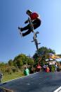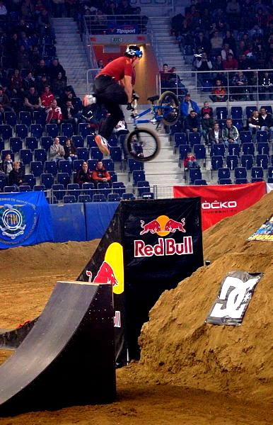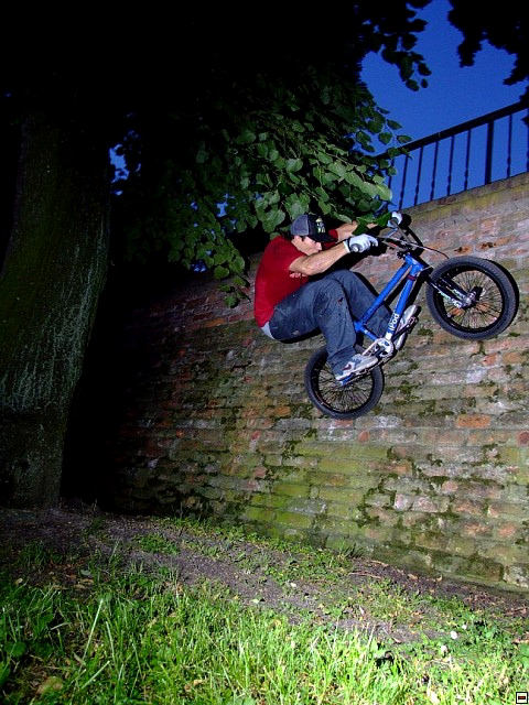 ...i třeba jamy, to taky vůbec není špatná věc a mnohdy můžou bejt jamy lepší než závod. Není tam takový ten prvek jakože porota a teď to musíš nahrotit. Nejde tam o sponzory, reklamy, peníze, televize... Já jsem v poslední době spíš pro tohle, jako jamy, různý session, road tripy a takový věci, než nějaký závody... Ale speciálně na tý Štvanici jsem chtěl jet. Máš pořád ještě nějaký ambice zajet třeba i na velkých závodech nějaký dobrý výsledek? Rozhodně nemám ambice co se týče výsledků. Já mám spíše ambice se s kolem podívat na různý zajímavý místa, vzít kolo a jet do Afriky, natočit tam video... Tímhle směrem jdou moje ambice. A samozřejmě tady je pořád chuť jezdit, zlepšovat se, překonávat sám sebe, dokázat si, že ještě zvládnu tenhle nebo tamten trik. Ještě k těm závodům, řekneš mi jeden nejlepší závod, na jakým jsi kdy byl? Nejvíc zážitek byla asi ta Štvanice v roce 2002, jak tady byl Hoffman, Chady Kagy, Kevin Robinson a další. Prostě ten Mat, ten byl vždycky pro mě nejvíc, tady se mu ztratilo kolo, tak vytáhl nějaký z krabice, dal ho do kupy a šel si zajezdit. A šel si zajezdit i do parku a kašlal na to, že má integrálku a venku chrániče. Chad Kagy dal flipwhip na minifunboxu, co tam tehdy byl... Ta akce byla skvělá, mě osobně hodně nakopla a myslím, že to tady posunula hodně dopředu. Za to díky Marku Rejmanovi. Minulý rok si chtěl jet dirtový závody ve Strašnicích, můžeme tě letos očekávat na nějakým dirtu? Uvidíme. Když budu mít čas si přijet třeba k vám zaskákat nebo na nějaký jiný místa, kde budou nějaký skoky a budu si to moct trochu najezdit, nepojedu to jak se říká z voleje, tak bych určitě rád. Asi to nebude o nějakých total psychárnách, spíš bych si jel nějakou tu čistotu. Já ten dirt mám vcelku rád, pro mě je to v podstatě větší funbox, takže rád bych se svezl na nějaký hlíně. Ty už jsi toho spoustu procestoval, můžeš říct pár míst, který tě opravdu zaujaly? Určitě Amerika. Woodward camp, Point X camp. Potom Barcelona, kam jsem kdysi jel úplně sám na kvalifikaci X-Games a loni v létě jsem se tam zase vrátil s Adamem Vaškovským. Španělsko obecně mám rád, moře, teplo, pláže, tmavovlasý polonahý ženský...(smích). Já mám obecně hlavně rád to teplo. Za tu dlouhou dobu, co tě znám, jsi se vždycky snažil přijít s něčím novým, vybočovat, ať už se jednalo o kolo, styl ježdění, oblečení, vlasy, cokoliv. Vždycky jsi měl něco novýho. Co pro tebe znamenaly a znamenají trendy? Trendy... Tak teď už jsem přeci jen trošičku konzervativnější...(smích) Na nějaký nový trendy třeba oblíkací jsou tady jiní mladí kluci, třeba David Benda, kterej je fakt vostrej (smích), on je ale i vostrej jezdec... Já už jsem dnes dospěl do stádia, že to není o tom, kolik máš náušnic, jestli máš řetěz u peněženky atd. O tom to vůbec není. Mám třeba rád dobrý kolo, tak si ho trochu tuním, baví mě to... Co se týče triků, dělám si radši nějaký svoje věci, který se ani moc nedělají... Když teď všichni dělaj condor, proč já bych měl dělat condor, že jo... Já jsem taky nikdy nekopíroval jednoho jezdce, jakože jet si to třeba přesně jako Aitken nebo někdo, to je podle mě úplný nesmysl. Spíš si beru od různý věci, na každým se mi líbí něco jinýho a z toho celkově potom vzniká ten můj styl. A snažím se jezdit si to podle sebe, svoje věci, svoje kombinace, který mi jdou, líbí se mi a baví mě. A jak tedy třeba vnímáš ty nový trendy, jakože dámský kalhoty, ježdění bez rukavic, bez kokosky, bez chráničů... Spousta oldschoolerů ve státech a nejen oldschoolerů v různých rozhovorech říká, co to je, kam se to dostalo... Podle mě je to určitý projev názoru na bmx. Jestli má někdo názor, že bude mít namalovaný oči, dámskou mikinu a dámský kalhoty, je to pořád jenom jeho projev. A já respektuju každýho, kdo se snaží být trochu jiný než ostatní. Mně to přijde lepší, než jít s masou. Ale nelíbí se mi, když se lidi snažej vzbuzovat pozornost, laděj nějakým způsobem kolo, hadry a tak dále, prakticky však v tom ježdění nic neuměj a nedávaj. To mi přijde postavený na hlavu. Když jsi trochu uznávaný nebo respektovaný jezdec, dáváš si triky co nikdo nedělá, nebo máš svůj specifický styl, pak to beru a respektuju. Ale přehnaní ladiči, kteří nic neumí... No, nevim no. Olympiáda. Z bikrosu se stal olympijský sport, podle mě zcela po právu. Dnes se vedou žhavý diskuze ohledně freestyle bmx ve spojení s olympiádou. Jaký na to máš ty názor, myslíš, že fbmx patří na olympiádu, nebo je příliš free a spíše to jde někam jinam? Já si myslím, že by to tomu sportu určitě pomohlo. Dalo by to tomu nějaký řád, udělaly by se nějaký tabulky, podle kterých by se hodnotilo, přineslo by to pravidla hry do toho závodění. Strašně moc lidí by v tomto bodě bylo asi hodně proti, ale pokud jsou proti, tak ať tam nejezdí, nekvalifikují se, jedou si to po svým a hotovo. Celkově se samozřejmě najdou velký plusy, šly by do toho nový firmy, vznikaly by parky atd. Na druhou stranu ten velký byznys má i negativa, jako všechno. Ale osobně bych v tom asi viděl spíš ty pozitiva. Co nějaký oblíbení jezdci? Kdo kdysi a kdo dnes? Na začátku to byl určitě Todd Lyons. To byl šílenec největšího kalibru a vlastně celá bikrosová Evropa z něj byla mimo, když v létě přijel na závody a dělal na bikrosce v jízdě 360 nebo zkoušel backflipa a podobně. (Todd Lyons alias „Wildman“ patří v USA mezi legendy, velký showman a bavič, v 90. letech vynikající bikrosař a dirtař, nepřehlédnutelná postava každého závodu, kde se objevil, jeden z prvních backflipařů v