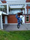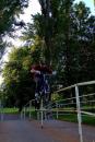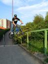 Samotný BMX. Freestyle BMX je sport bez hranic. To že ses naučil nějaký triky neznamená, že jseš king, že to je konec. Podle mě je to nekonečný. Jsou různý odnože jako dirt, street, vert, flat, kterej jsem jedinej nejezdil a považuju ho za strašně těžkej. Fakt uznávám kluky, co ho jezděj. A tím, že jsem jezdil všechno, tak si můžu jakoby vybrat. Když už se mi nebude chtít jezdit v parku, zajdu si na vertikálku, která tu teď v Hradci je. Pak si můžu jít na street, kde si vymýšlíš svý triky do toho prostoru tý ulice, což je hodně zajímavý, zábradlí, kde tam naskočíš a dáš to nebo držka... Pro mě je čistej street úplnej vrchol, to je nejvíc a kdo dává hustě street, je fakt dobrej. Tvůj tricklist je určitě hodně rozsáhlý. Jaký jsi měl oblíbený triky třeba před několika lety a kam se to posunulo dnes? Řekneš mi 3 svý nejoblíbenější triky? Hrozně rád mám věci na předku. Nosepick, footjam, toothpick. Pocit stát na tom předním kole mě baví. Pak mám rád zábradlí. To mě baví. V poslední době jsem přišel na to, že mám docela vysoký bunnyhop, takže naskočit si na vysoký zábradlí a sjet si ho. Respekt mám z prudkých zábradlí, z toho mám trochu strach. Z leteckých triků tailwhip. S tailwhipem jsem se trápil 5 let, než jsem přišel na to, že hodělám jinak než ostatní, že ho kopu přední nohou. Že jsem se ho dnes naučil do tailtapu, downside do dizzasteru, přes spinu, přes velblouda v Úpici, to je pro mě jako splněný sen. Najde se ještě nějaký trik, který by ses rád naučil? Mám asi 2 triky, který mám připravený. Jestli se povede udělat v Úpici resi funbox (funbox s molitanovým dopadem potaženým vrstvou gumy, díky čemuž se na něm dají triky normálně odjíždět – pozn. H.), což bych si přál a je to na dobrý cestě, aby byl, tak mám 2 triky, který bych chtěl zkusit. První je backflip nohand a druhej je 360 downside tailwhip, co dělá Jirka Karlík na hlíně, což považuju za velkou husťárnu. Takže tyhle dva triky. A potom z techniky třeba footjam to barspin, já tu techniku obecně mám rád a tam je toho spousta, co se dá vymýšlet. Co zranění, tys toho prodělal určitě mraky, jaký byly ty vážnější?