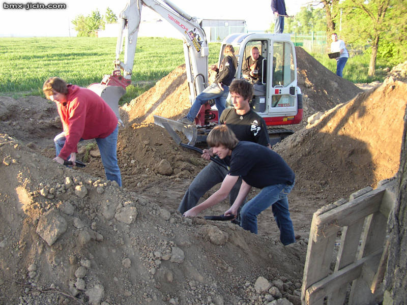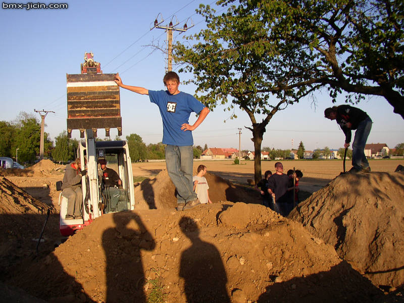 Na čtvrtek bylo plánováno první ježdění. Jako naschvál (a stejně jako ve Dvoře) nás ve čtvrtek překvapil poměrně hodně silný protivítr. V kombinaci s hlínou, která pracovala daleko více, než se předpokládalo, se stalo ježdění docela oříškem. Problémy dělal hlavně druhý a pak i čtvrtý jump na velký lajně. První to snad celé naskákal Frky, ale to jsem už nebyl na místě, protože jsem musel odjet, tudíž více nepovím.