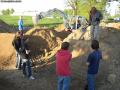 V pondělí následoval přesun do Nehvizd nedaleko Prahy. Nehvizdy asi žádnému dirtařovi nejsou neznámým pojmem díky populárnímu každoročnímu contestu Airstrike. V Nehvizdech nás čekalo něco docela jiného. Úzký úvoz mezi poli, uprostřed řádka třešní, navíc se zde nemohlo kopnout do země, což za určitých okolností může být také docela problémem. Na druhou stranu oproti Dvoru parádní hlína a takřka absolutní volnost v designu skoků z hlediska lokálů. Počáteční obavy, jak se v úzkým prostoru uplatní technika (mimochodem jeden bagr, bobcat a doplňkově traktorbagr), se brzy zažehnaly a práce šla rychle od ruky. Vyrostly zde dvě rozměrově naprosto odlišné lajny, z nichž ta menší se po třetím skoku rozdvojuje. Společný oběma lajnám je trailsový ráz, rukopis jičínské crew je zde docela patrný.