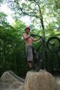 Tak takhle se letos les měl. Ale vlastně ještě jsem zapomněl na jednu věc, největší highlight letošního roku, za který by Ferda dal hodně vysoký body a možná hned několik flašek samohoňky. To bylo takhle: Přijedu si hezky po práci do lesa, beru kolo, na EMU jsou desky, Kudr zřejmě vyházel tu obrovskou kaluž před posledním(?), dobře von. Jedu si to teda na EMO, dablík po zadním, letím si druhej, před třetím trochu bahýnko, kterýho si všímám, leč neřeším, v poklidu vylítávám a najednou DĚSSSS!!!!! Spouštím řev, jak kdyby mě deset rohatejch na nože bralo a zatínám zuby. Ta kaluž byla hluboká po řídítka, voda kovové barvy v ní stála dlouho a vůbec nevoněla. No co si budeme povídat, byl z toho mokrej a špinavej Hout od hlavy až k patě, zbytek dne jezdící jen v trenkách, EMO nikdy víc:-)