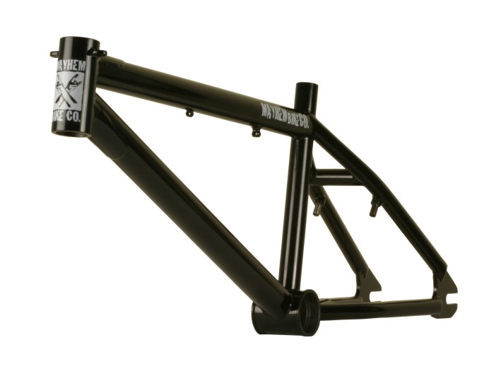 10.10.2003 00:24 - Update k článku Mayhem Bike Co. Nyní můžete skouknout oficiální obrázky z nabídky rámů od této značky. V bezbarvém laku je Tomas Vondracek Pro model - 20,8 TT, váha 2,7 kg + euro střed a v černé barvě Dan Müller Pro model - 20,5 TT, váha 2,65 kg + klasický bmx sřed. Pro více informací můžete volat na již avizovaná tel. čísla nebo napsat na email: info@mayhembikeco.com Pics by: Turbo